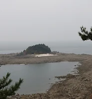 하늘과 바다의 경계가없는 아름다운 조망은 보이지 않고, 건너편 대산황금산,