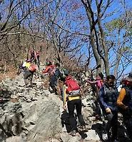 동학사에서 올려다보면 삼부처가 있는것처름 보인다는 삼불봉을 내려가는길도 가파르다,