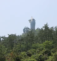 산 위에 보이는 땅끝 전망대, 자세히보니 전망대까지 모노레일이 깔려 있다, 땅끝을 찾는 관광객에게 국토순례 시발지인 땅끝의 아름다움을 더욱 생동감있게 볼수있는 장소를 제공하고 장애인 노약자등이 땅끝전망대까지 갈수 없었든 불편을 해소하는 차원에서 해남군과 한국모노레일(주)가 공동투자를해서 2005년 땅끝모노레일카 설치를 준공했다고 한다,