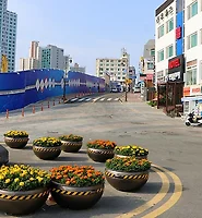아직 공사중이지만 바닥은 끝났어니 덕분에 편안하게 길을 지나간다,