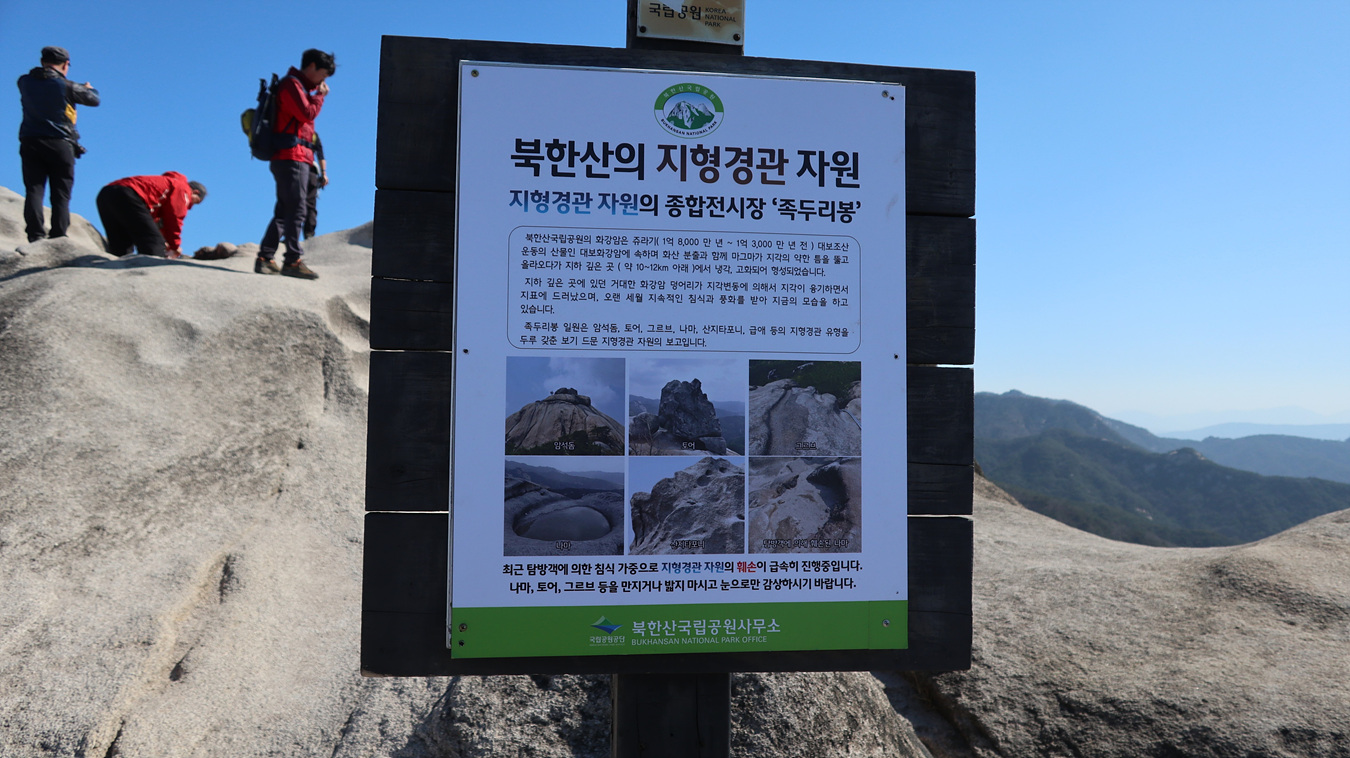 족두리봉은 지형자연경관의 종합전시장이라는 안내가 붙어 있다,