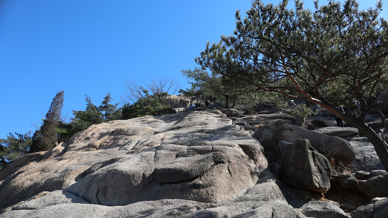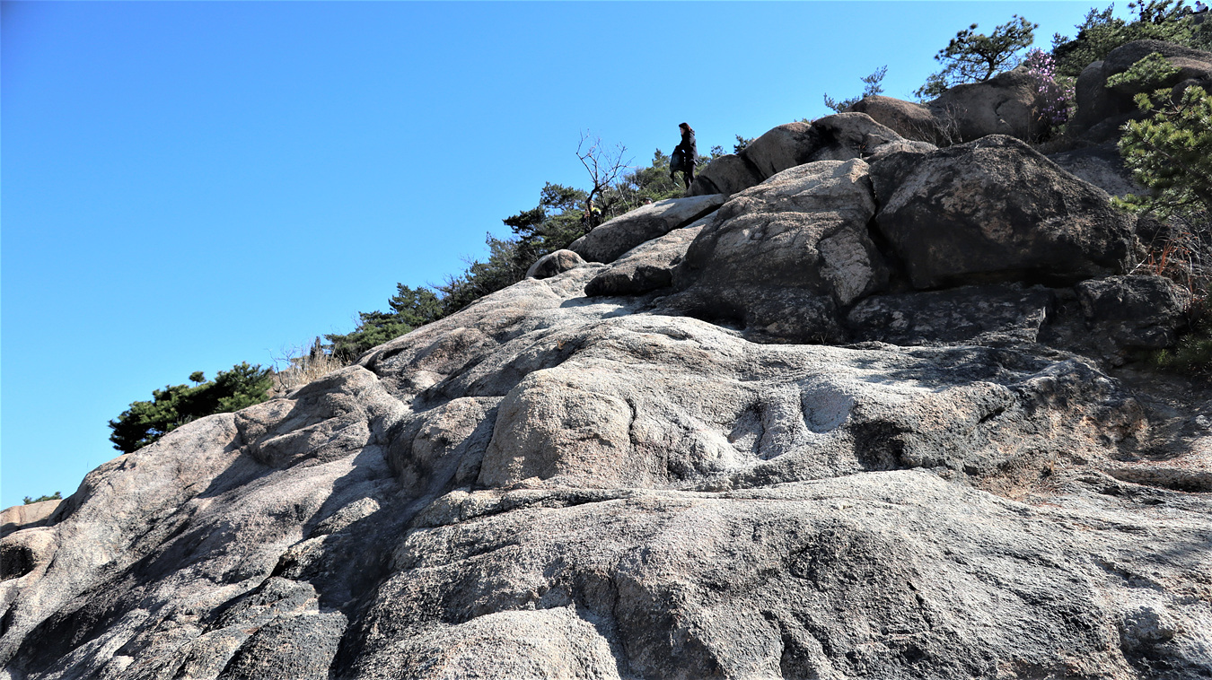 이런 화강암은 그냥 서서 걸어올라가도 미끌려지지 않는다,