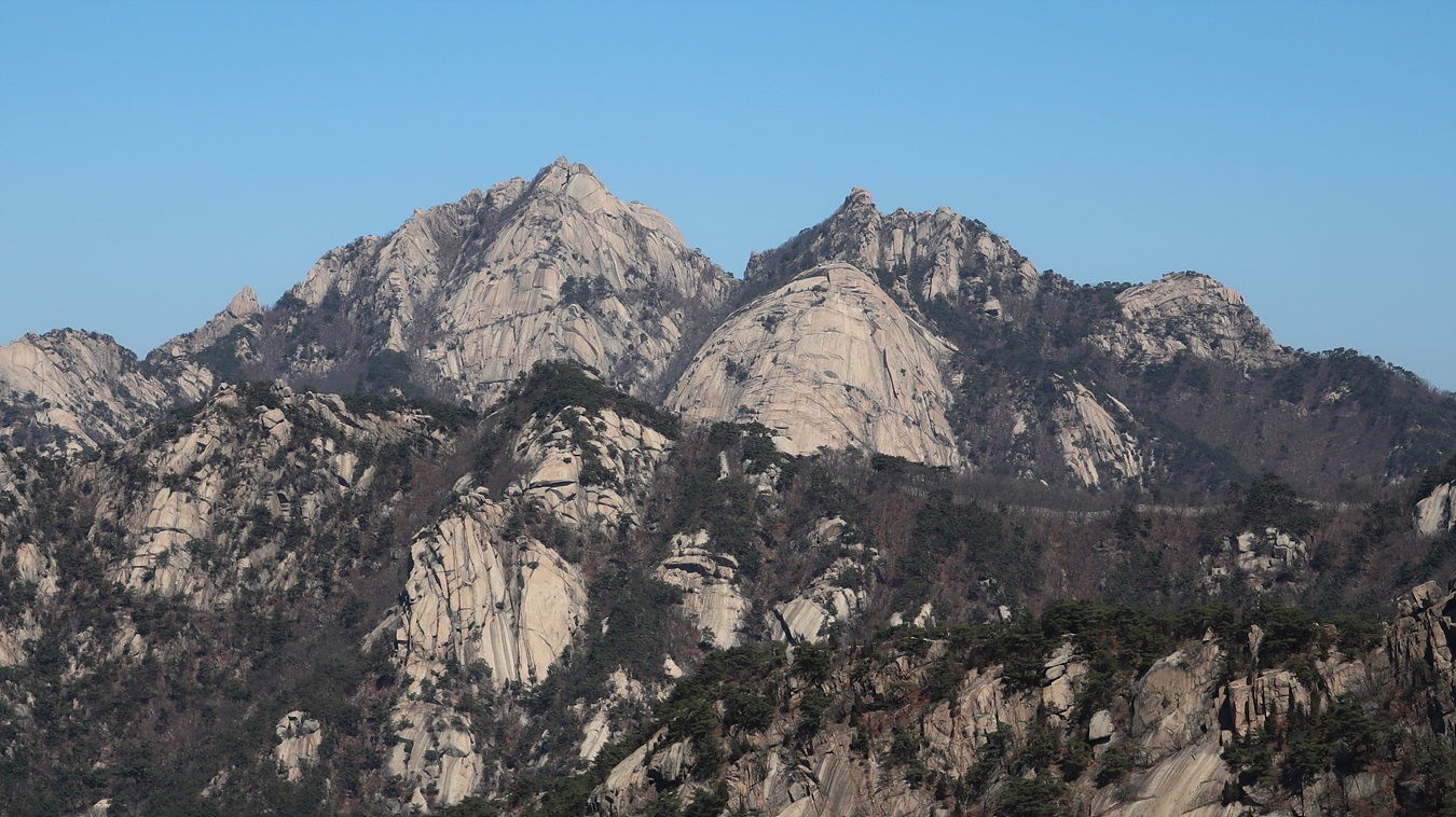가깝게 본 백운대 그 옆으로 만경대와 앞에있는 노적봉