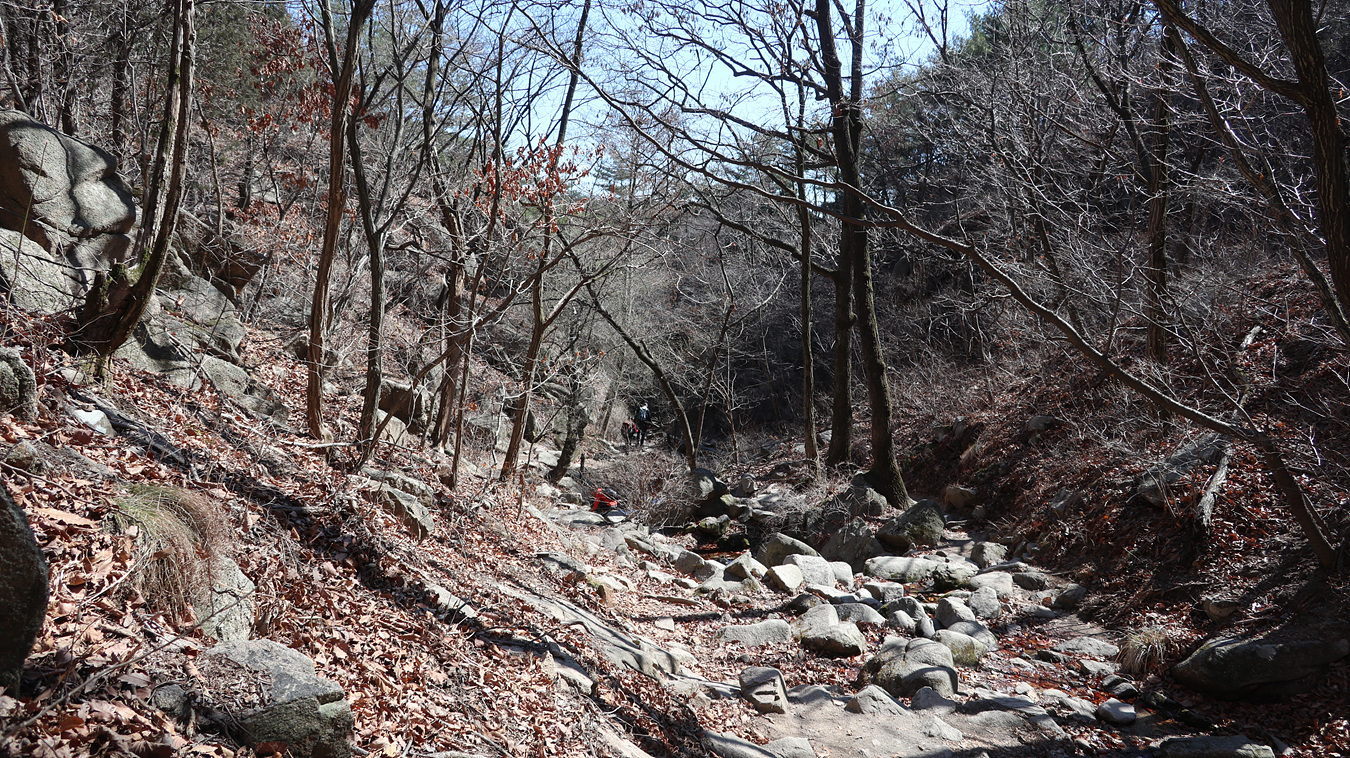 승가사 입구도 지나서 구기계곡으로 내려 간다,