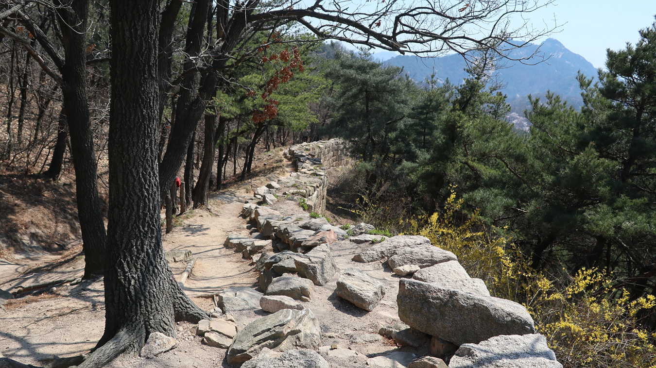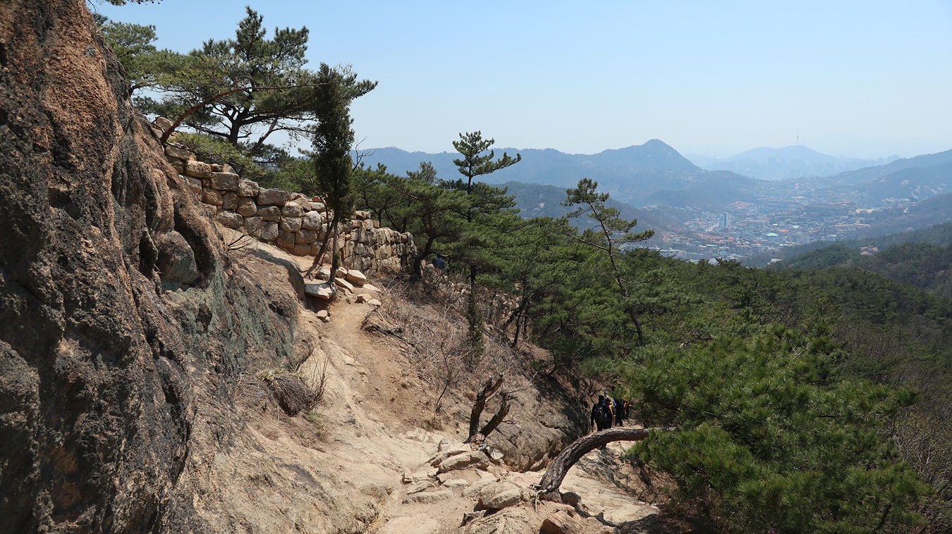 인왕산에서 상명대학교 북쪽 향로봉 아래까지 성곽이 남아있다.