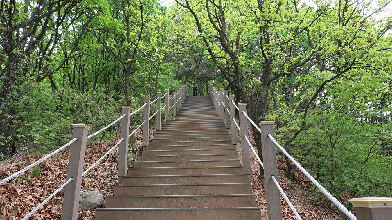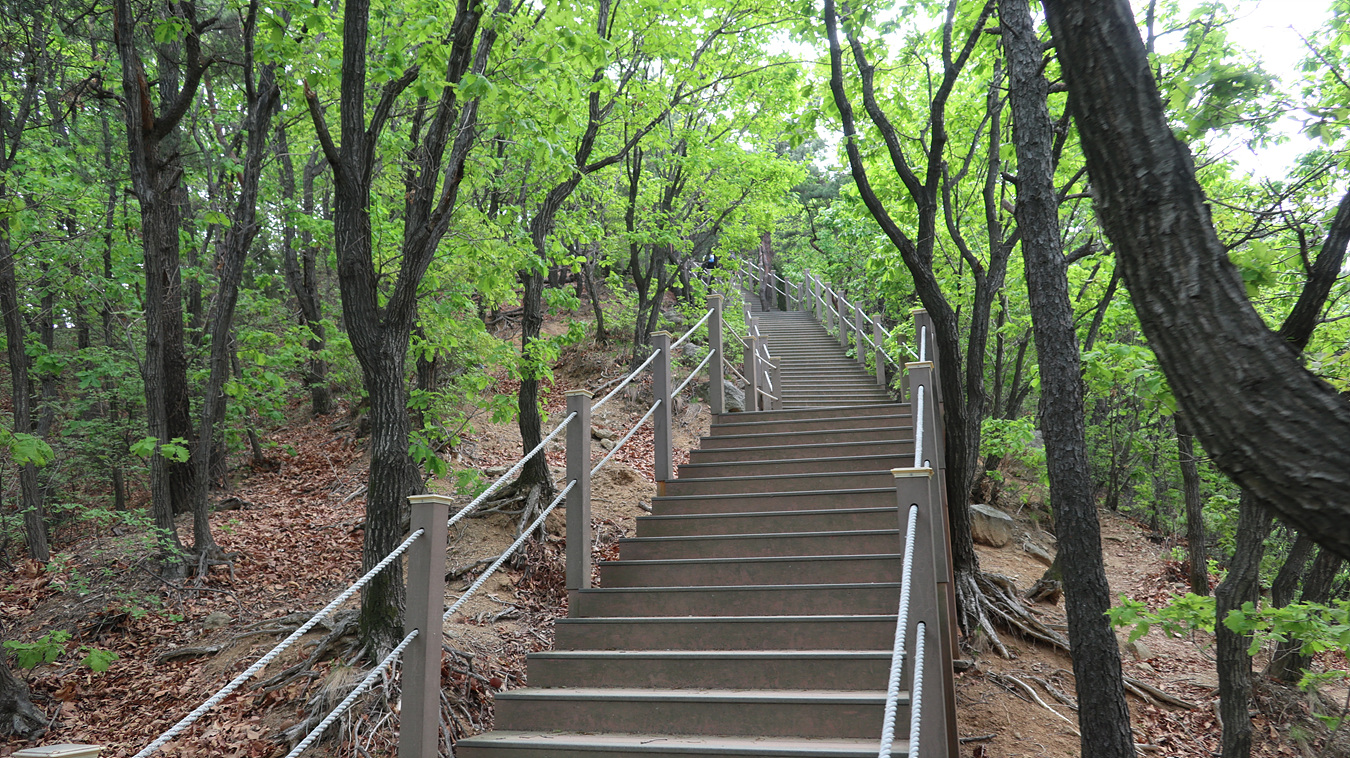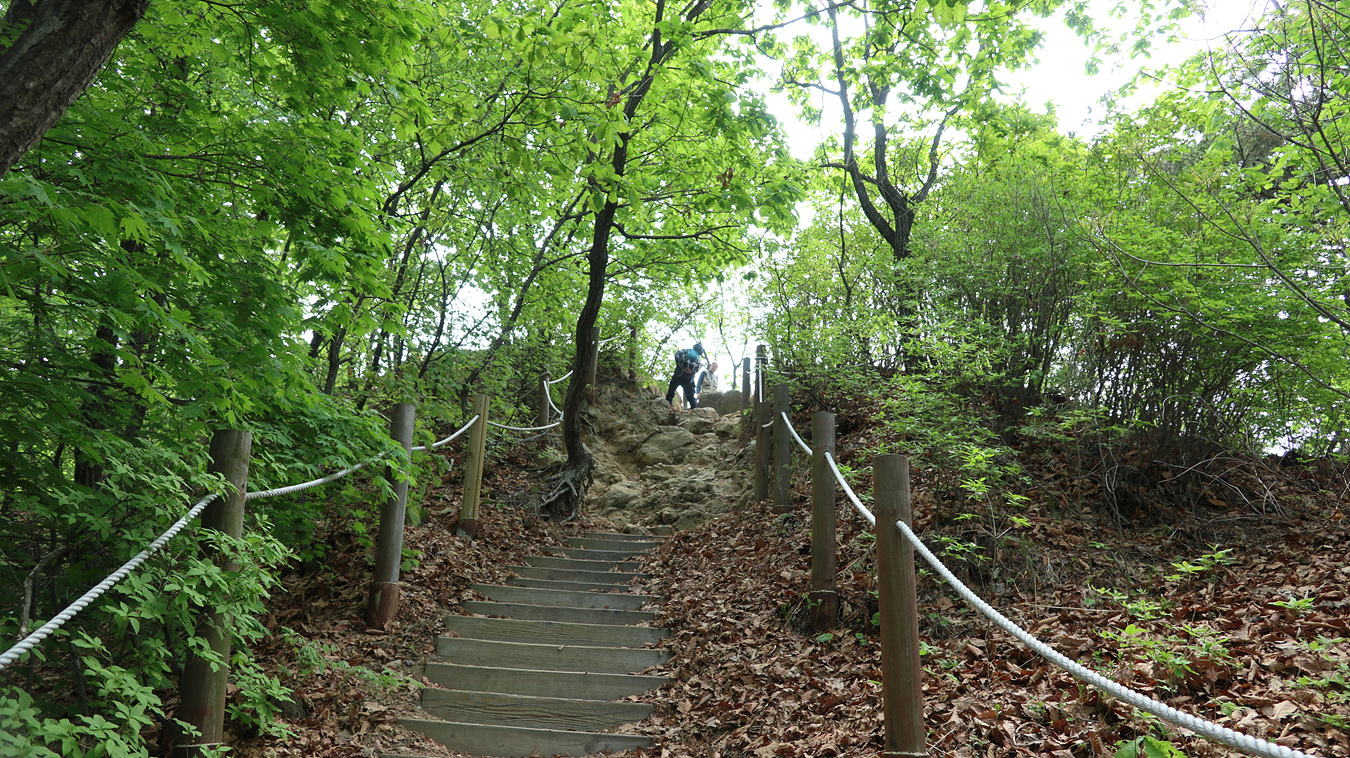 남한산성으로 올라가는 등산로에 나무계단이 보이면