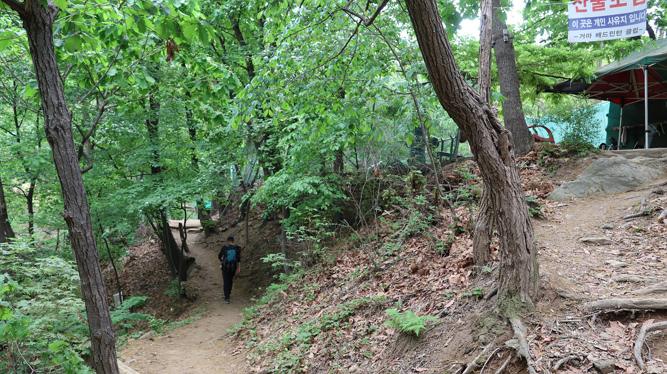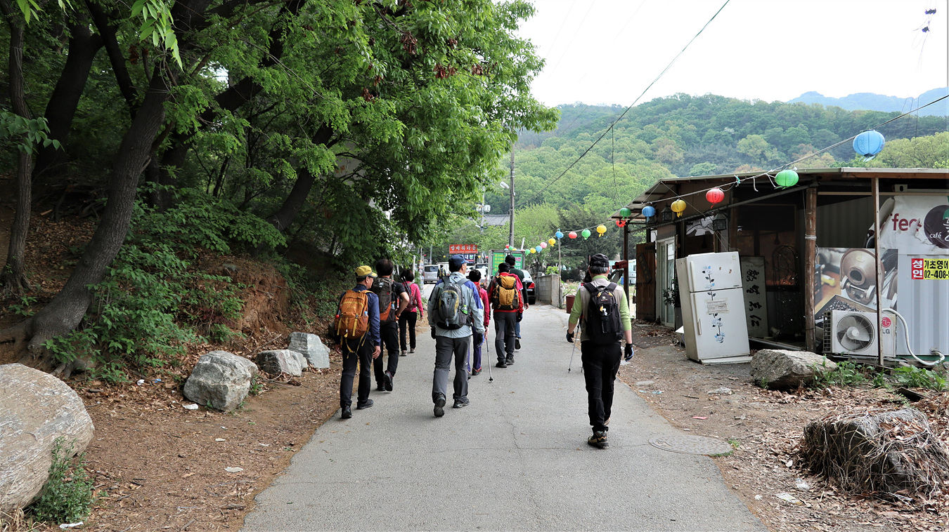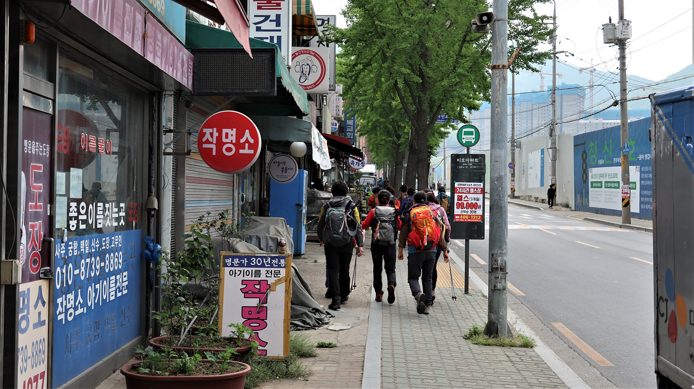 등산로 입구라 군데 군데 아웃도어 매장과 음식점들이 보이지만