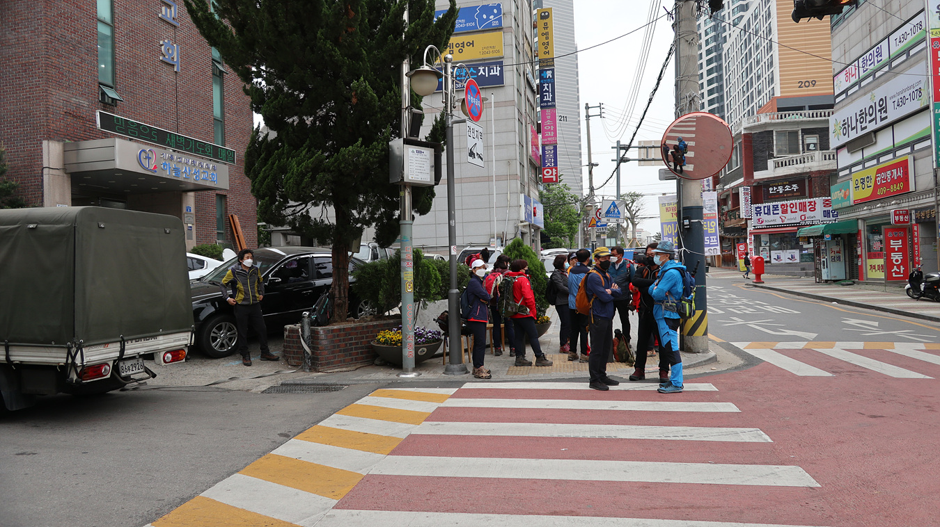 지하철 5호선 마천역 1번출구에서 남한산성으로 오르기 위해 모였다,