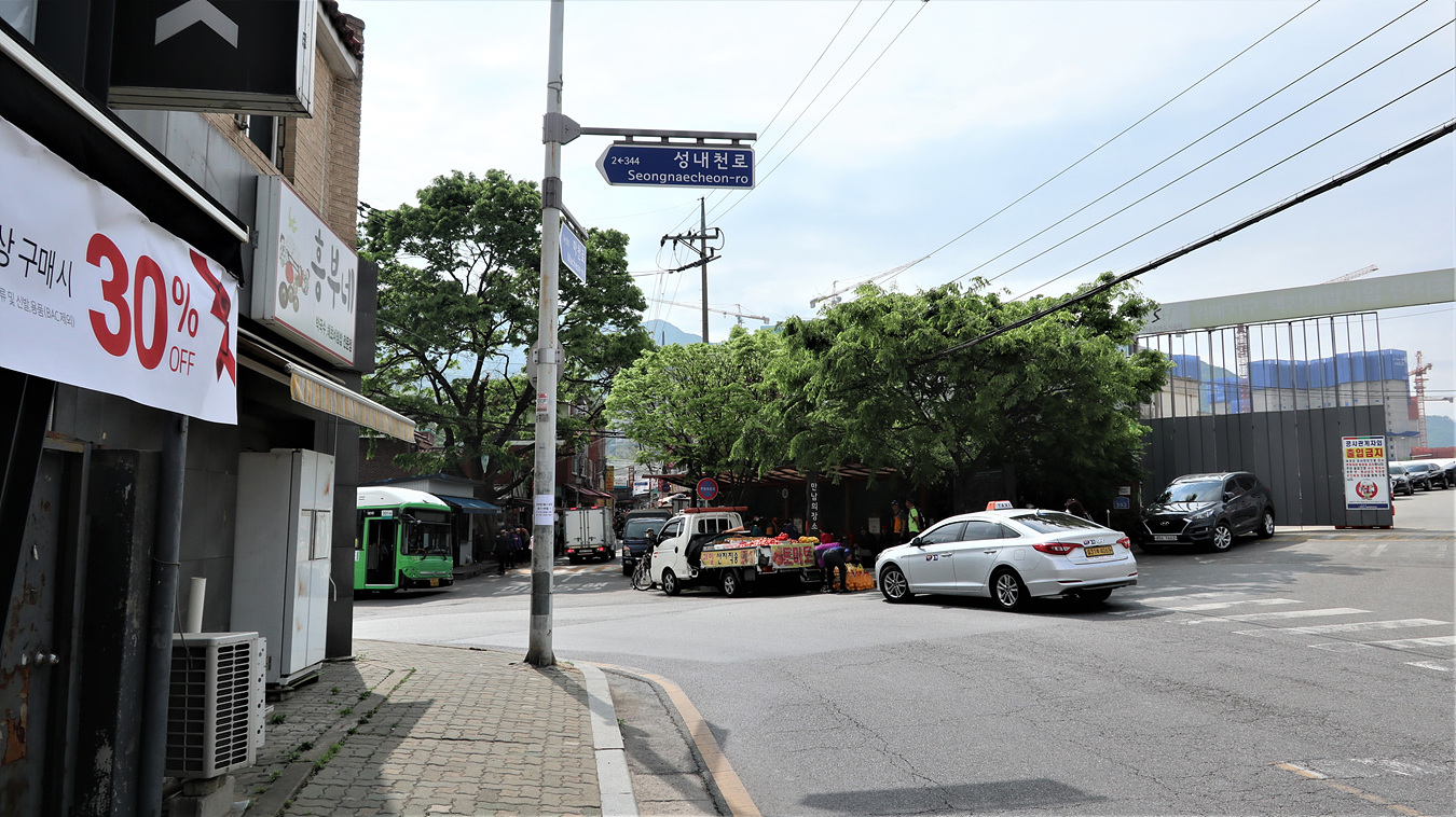 마천로 끝 버스주차장이 있는 곳에서 그대로 직진을한다,