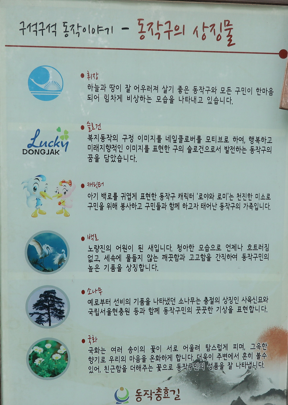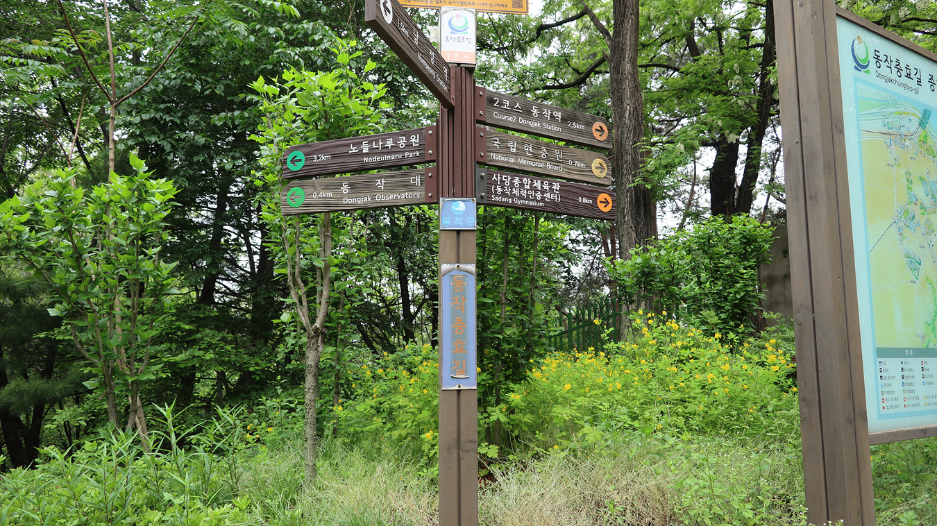 이정표를 보면 충효길 1코스 까지인 현충원 상도출입문은