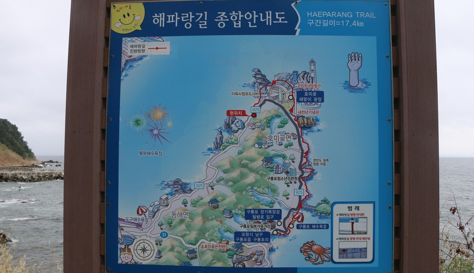 해파랑길 종합안내 지도 도 있다, 해안에 바짝 붙어있는 빨간선이