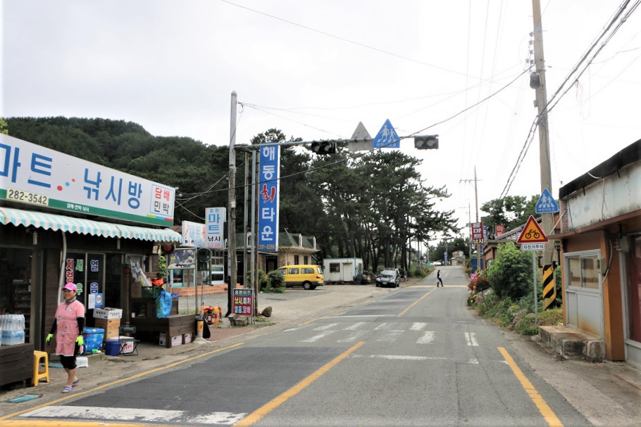 해맞이로 마을 도로를 따라 올라간다,