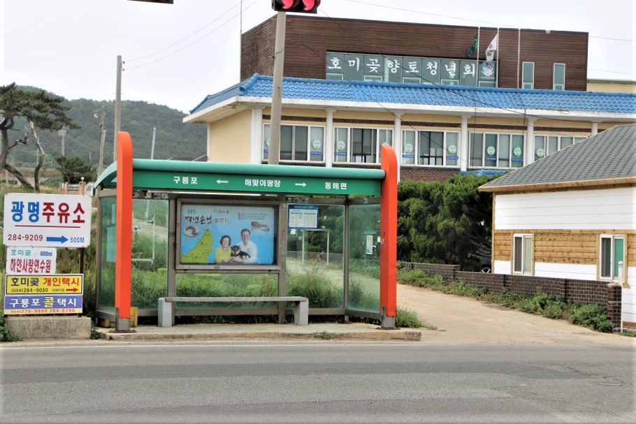 해맞이광장 버스정류장으로 왔다, 이곳에서 지나가는