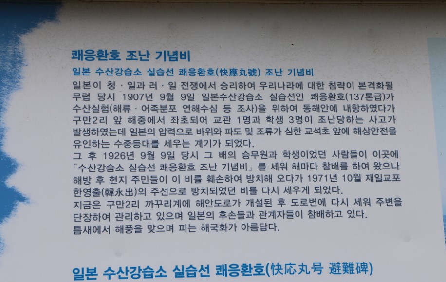 쾌응환호 조난기념비에 대한 설명이 있는데 간략히 옮겨