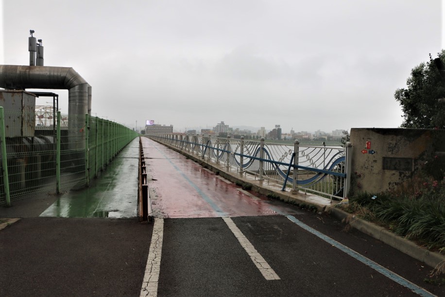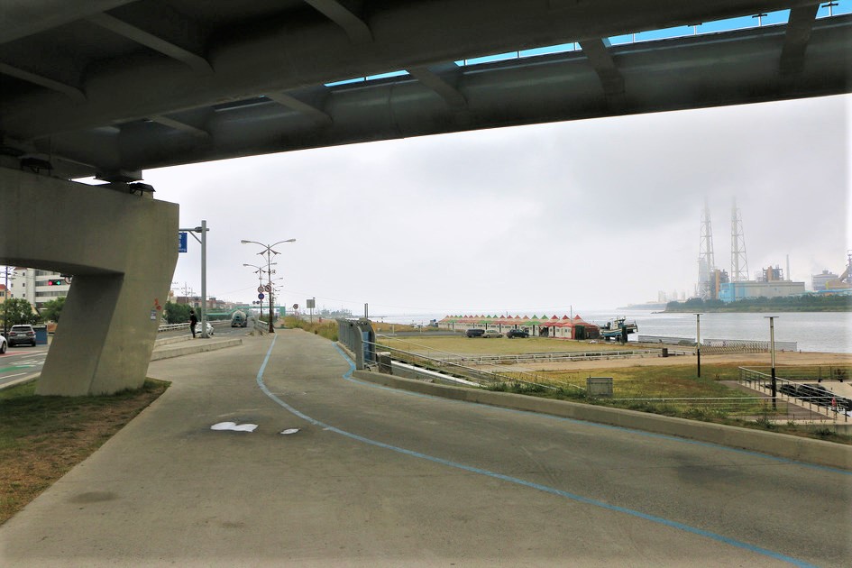 앞에 대교가 보인다, 저 대교까지 가면 길고 먼 포스코 담장길이 끝난다,