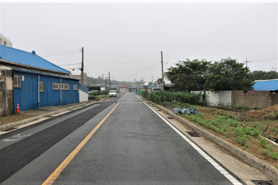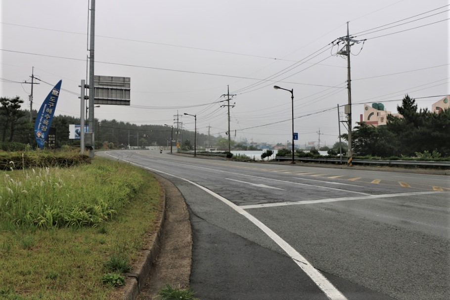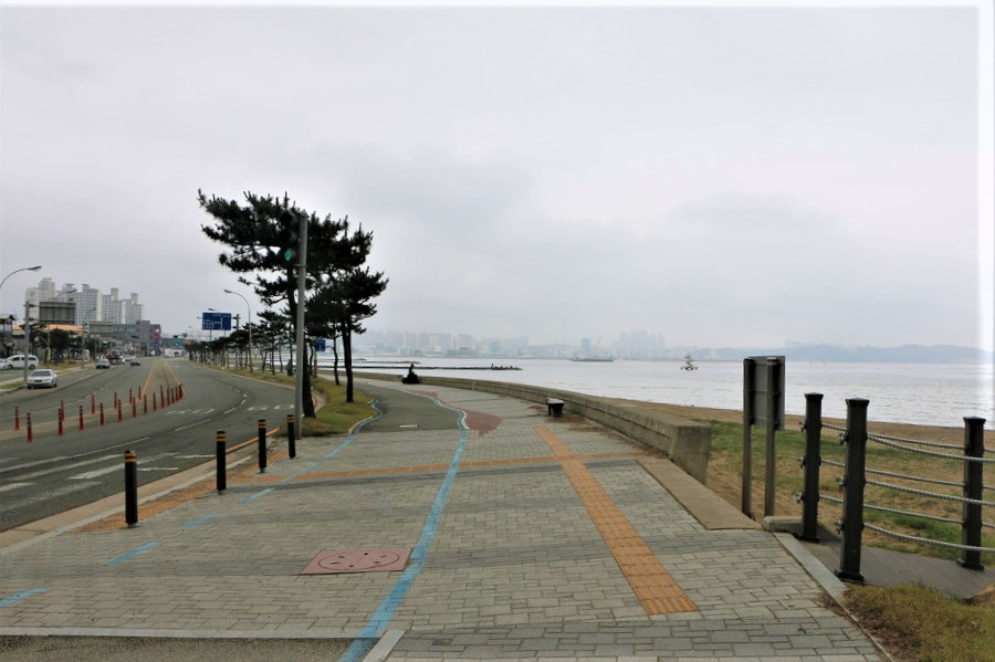 왼쪽길은 울산공항 담장이고 오른쪽은 바다다,