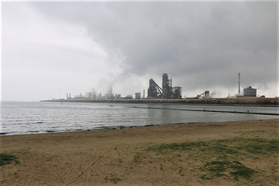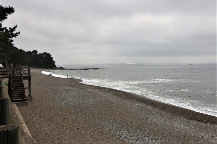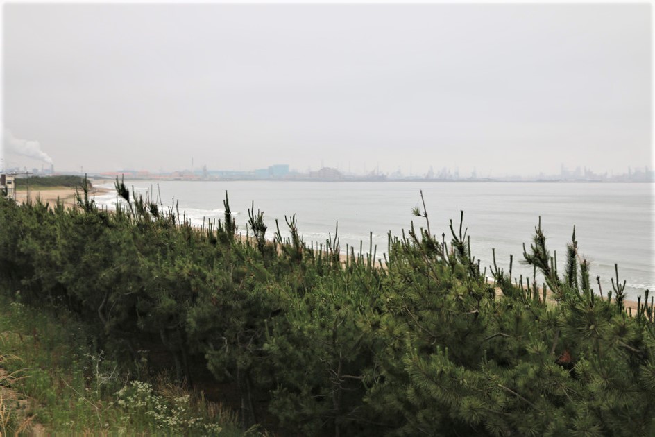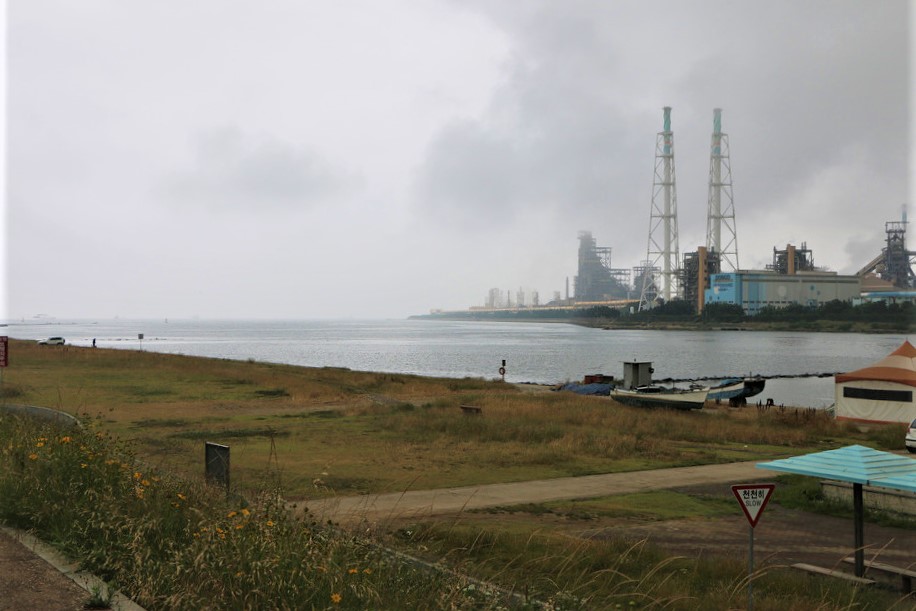 뒤 돌아보니 포항제철해안 끝 지점의 모습이보이는데