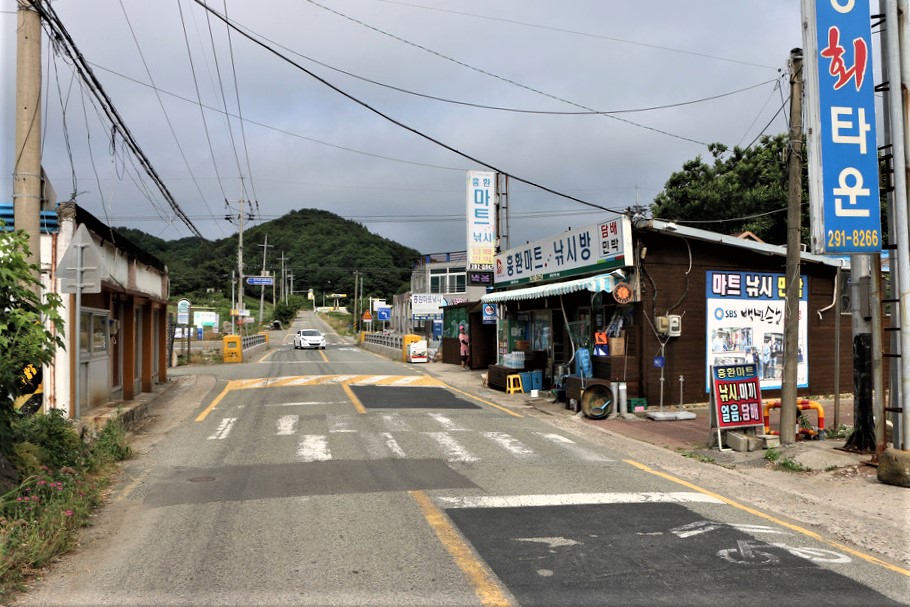 동해면 약전리 사거리다, 이곳으로 온 이유는 오늘밤 묵어야 할 숙소를