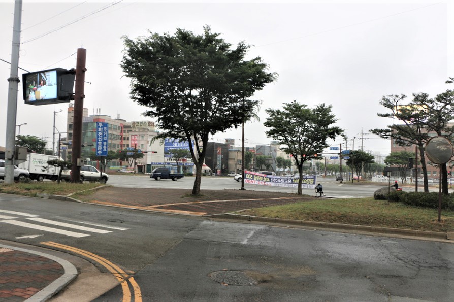 우선은 앞에 보이는 동해교차로를 지나 오른쪽으로 건너가야한다,