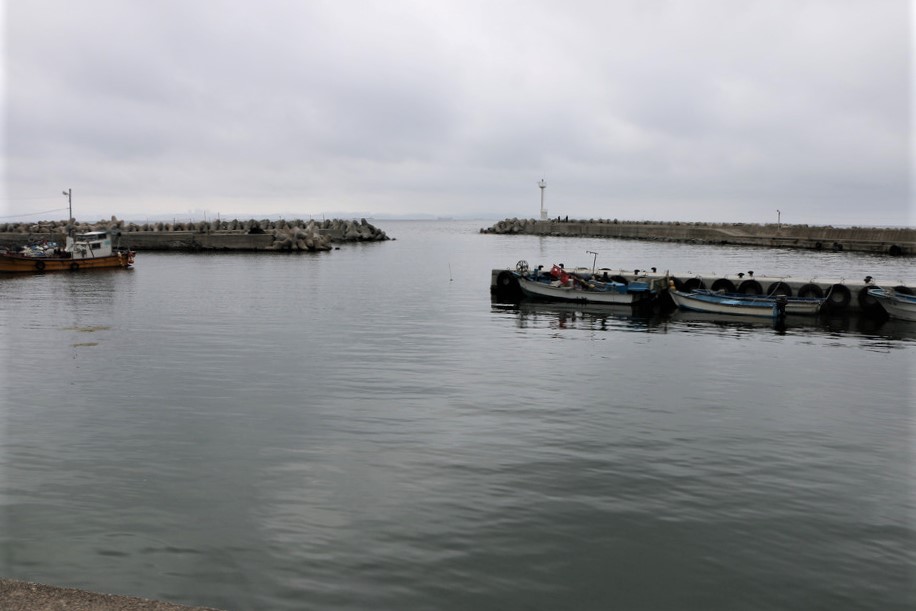 입암2리 방파제 내에 몇척의 어선이 한가롭게 정박해 있다,