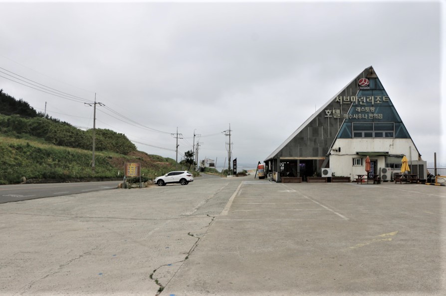 서브마린 리조트호텔이 보이지만 더 이상 해안길은 없다,