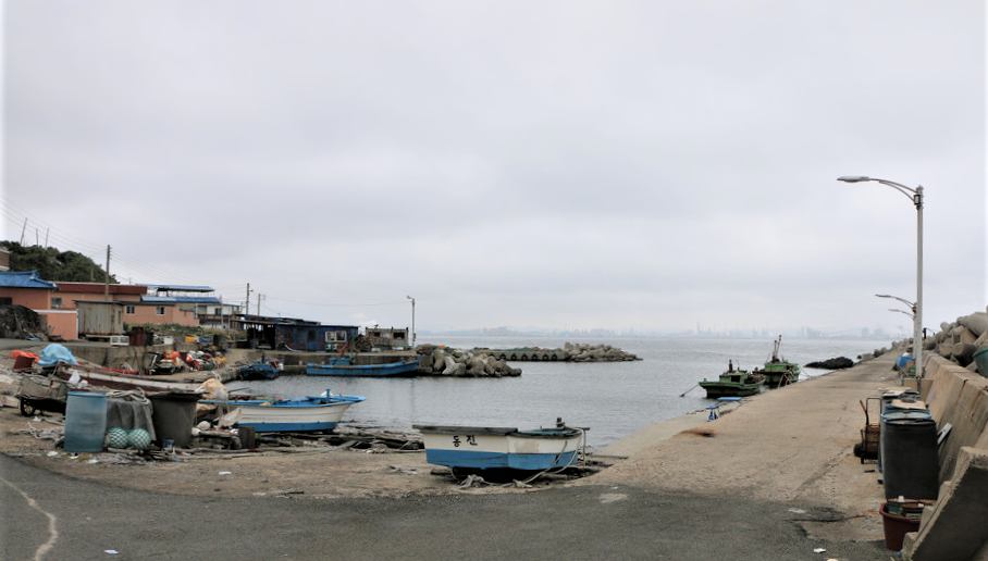 세멘콘크리트 방파제 가 보인다,