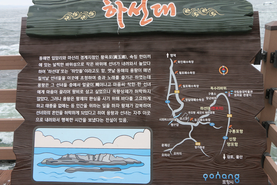 이곳으로 찾아오는 길은 포항시 남구 동해면 마산리 하선대다,