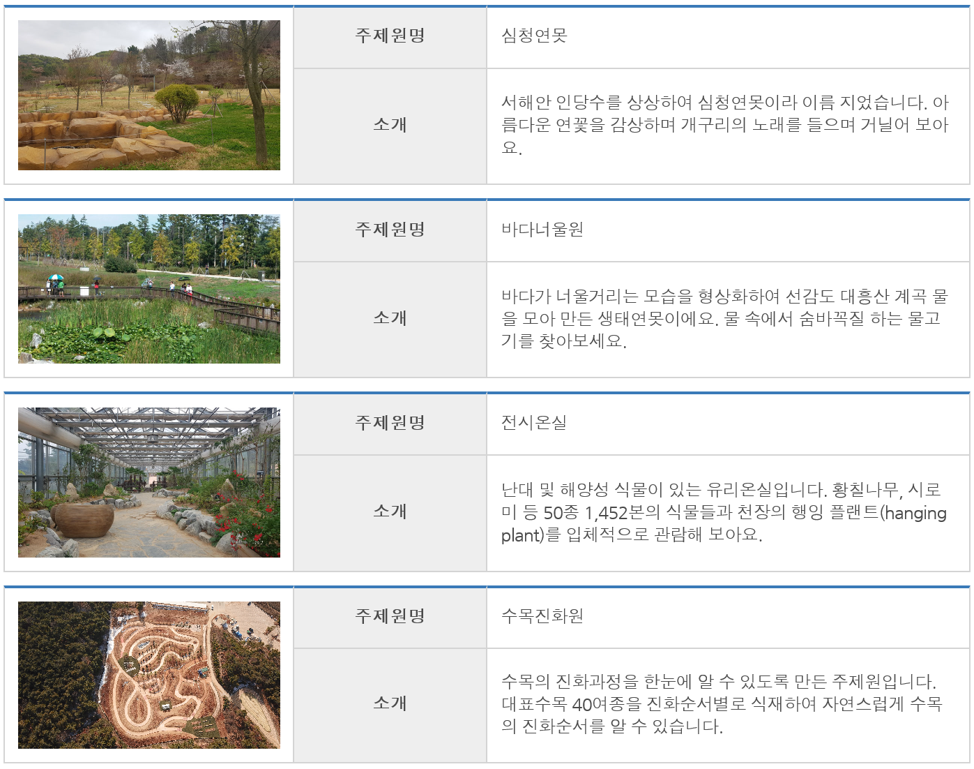 생각하면서 수목원 홈에서 중요 시설들을 캡처해 아래에 붙인다,