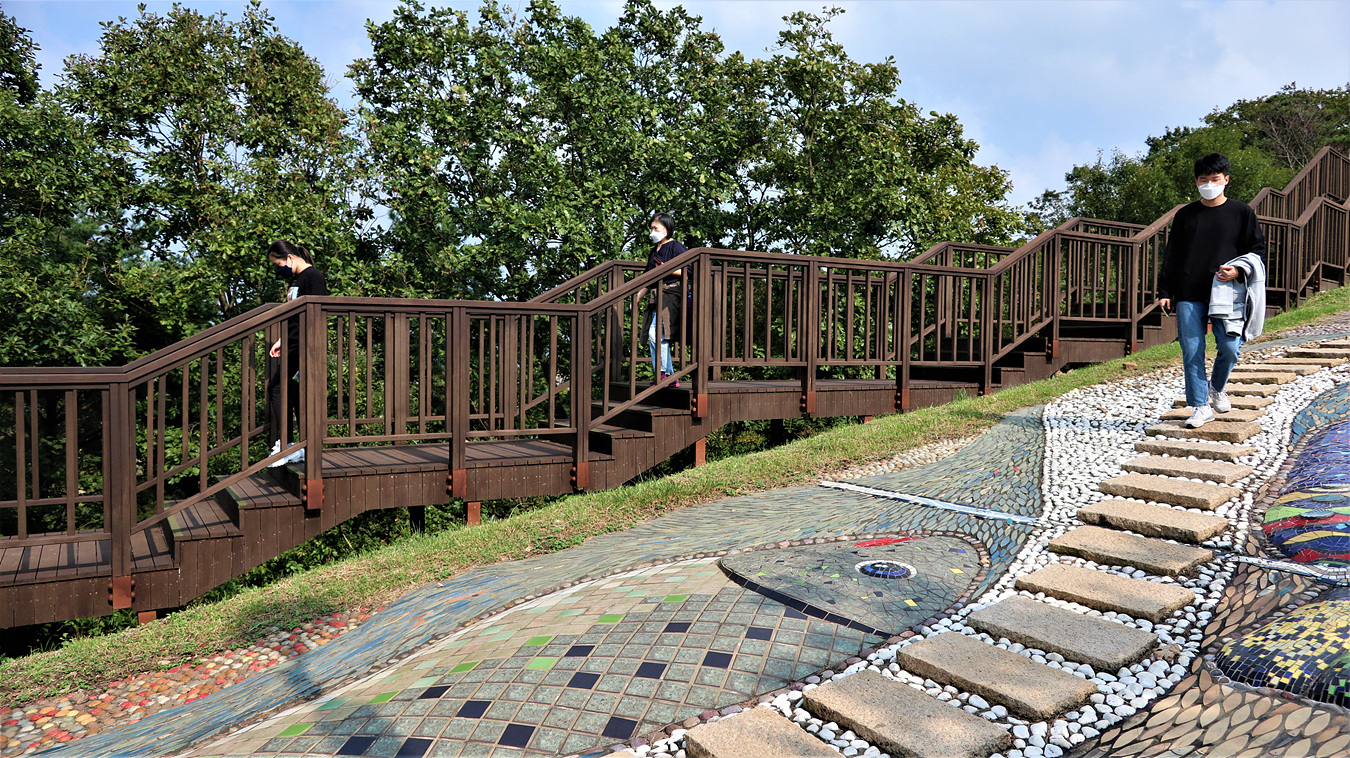 산책길보다는 조금 가파른 가벼운 등산을 해야 한다,