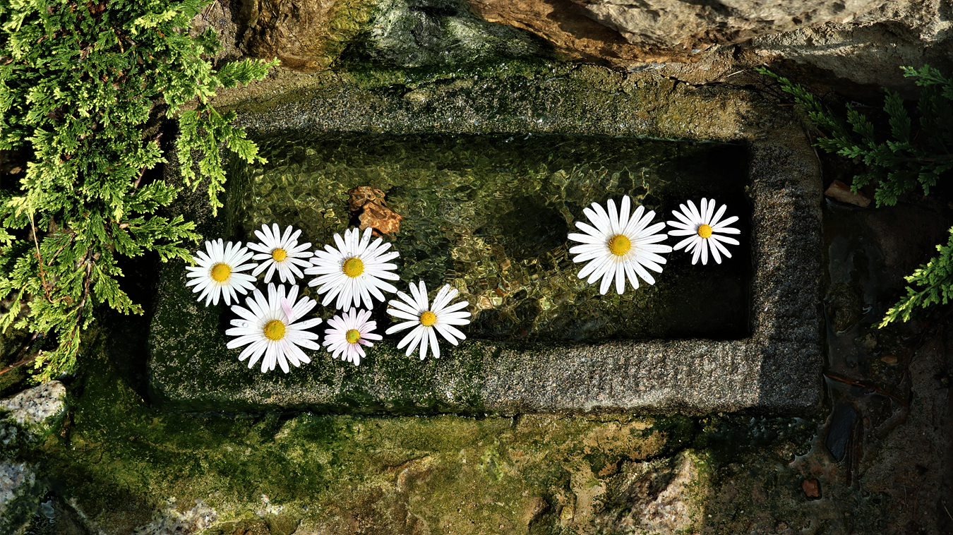 물 위에 뜨있는 국화 몇 송이도 가을을 알려주고