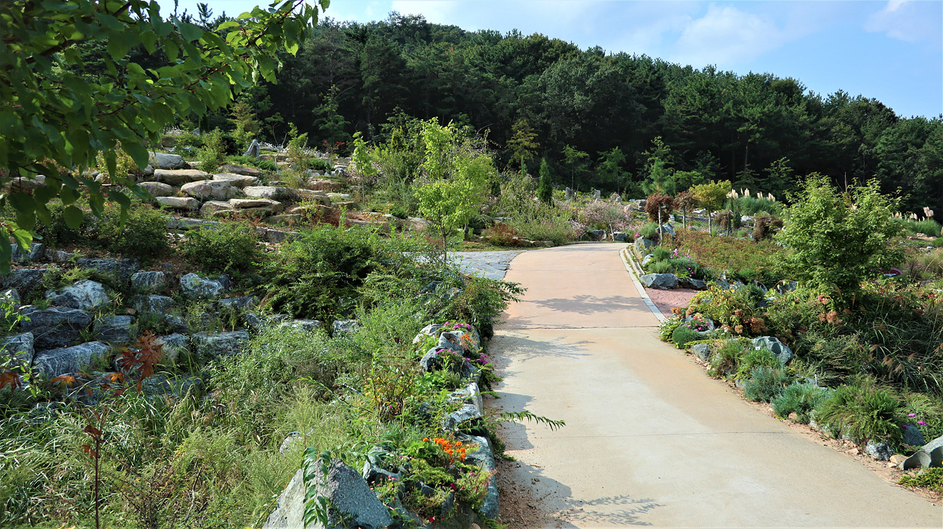 토양이 척박하거니 물이 부족해도 잘 자라는 식물들을 심였다고 안내되여 있다,