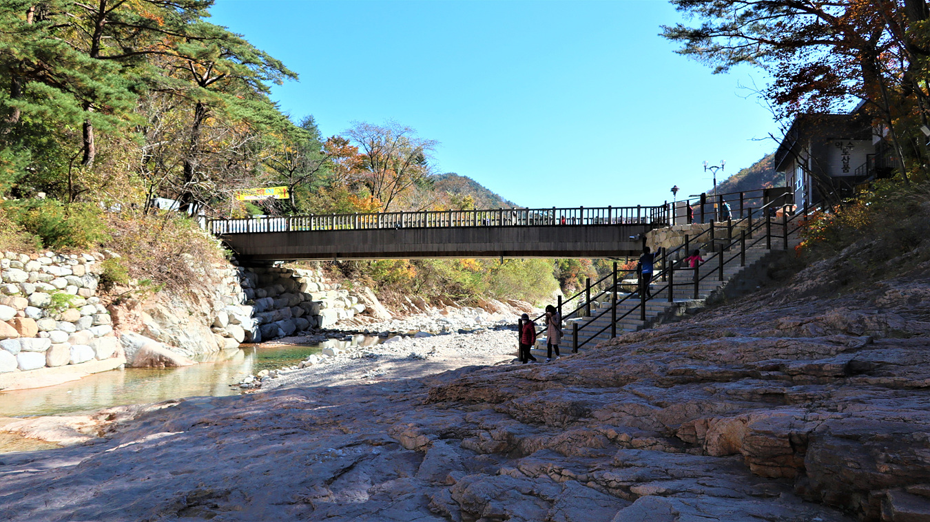 계곡 징검다리를 건너있는 숲길에
