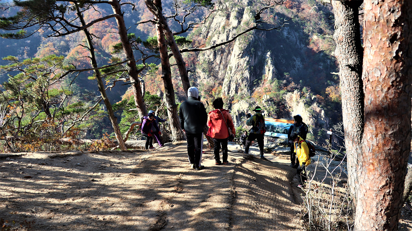 만경대를 떠나서 오색 약수터로 내려 간다,