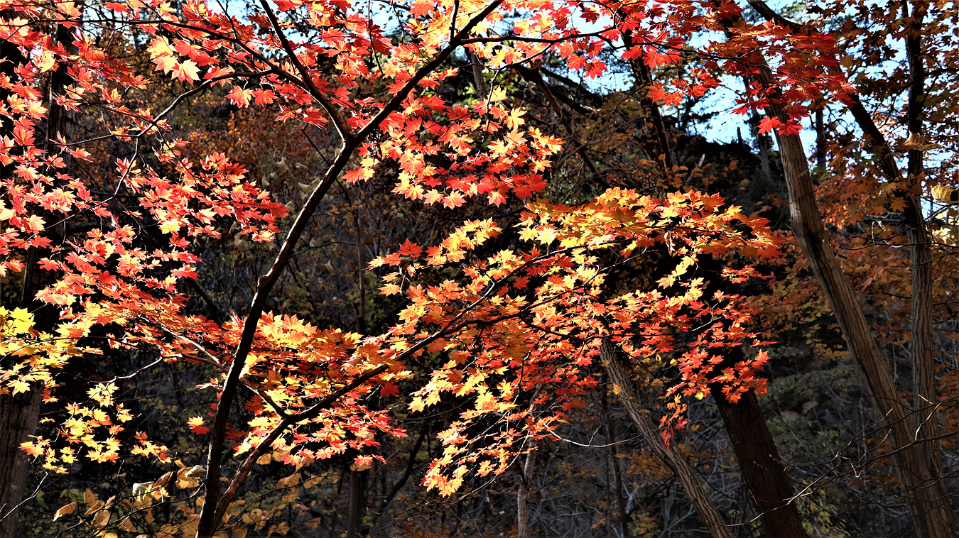 햇살을 머금은 단풍이 한줌보인다, 이제 이곳의 올해 단풍은 끝물인가보다,