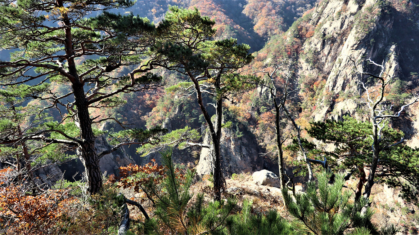 만경대 높은 곳에 있는 금강송 2그루
