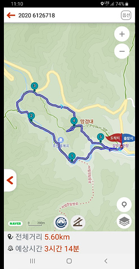 원점으로 돌아온 거리는 약 5,6km였고