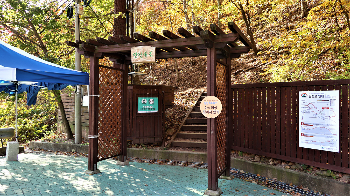 만경대로 가는길은 이곳에서 시작해 만경대 탐방후 오색약수터로 하산을 한다,