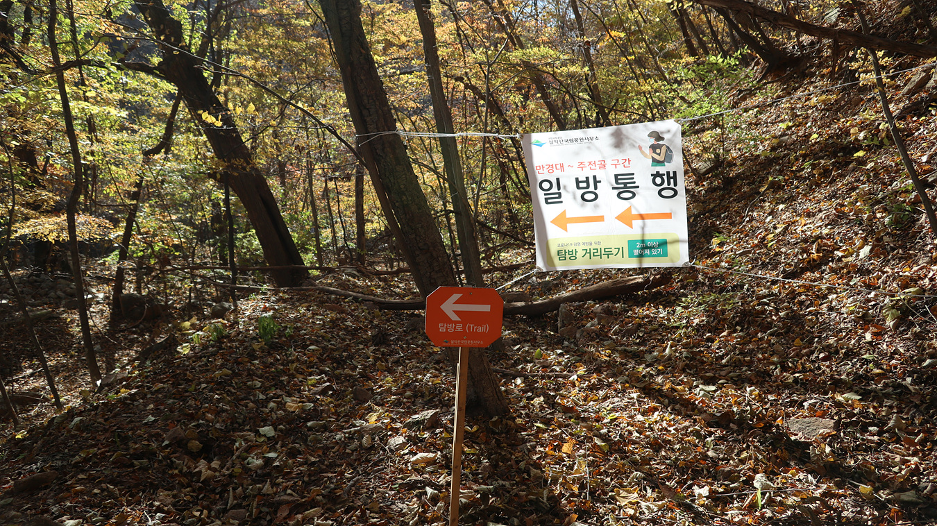 용소폭포탐방지원센터 에서 만경대 임시 탐방로로 해서 만경대로 갔다가