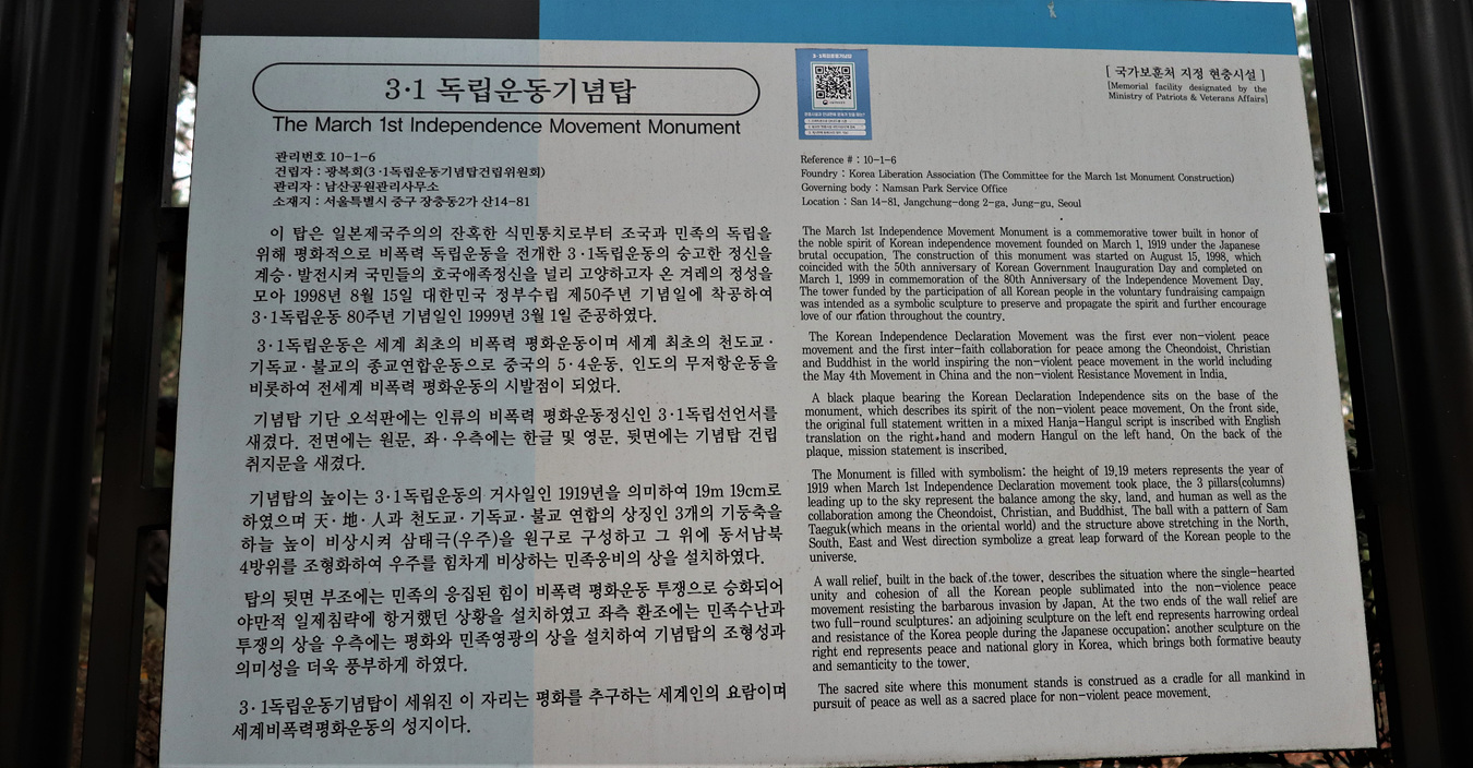 장층단공원에 3,1 독립운동 기념탑도 있고