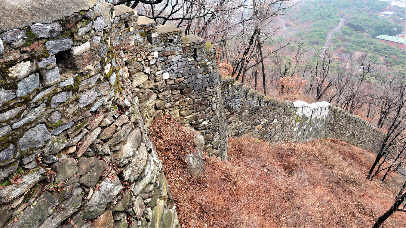 한양도성은 이렇게 산 비탈을 따라서 길게 이어진다,