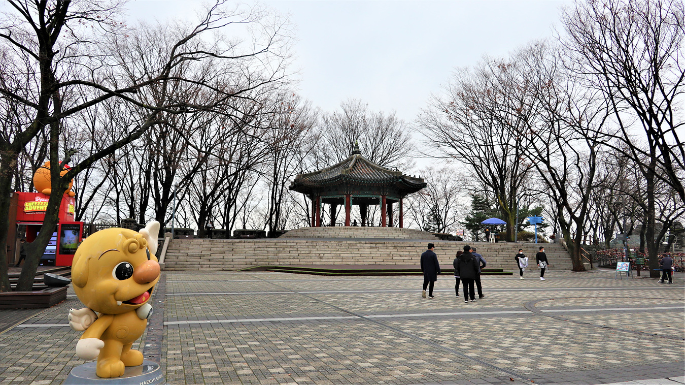다시 건립된 정자다, 남산정상에는 85타입캡슐이 있다, 이타임캡슐은 500년 후인 2485년에