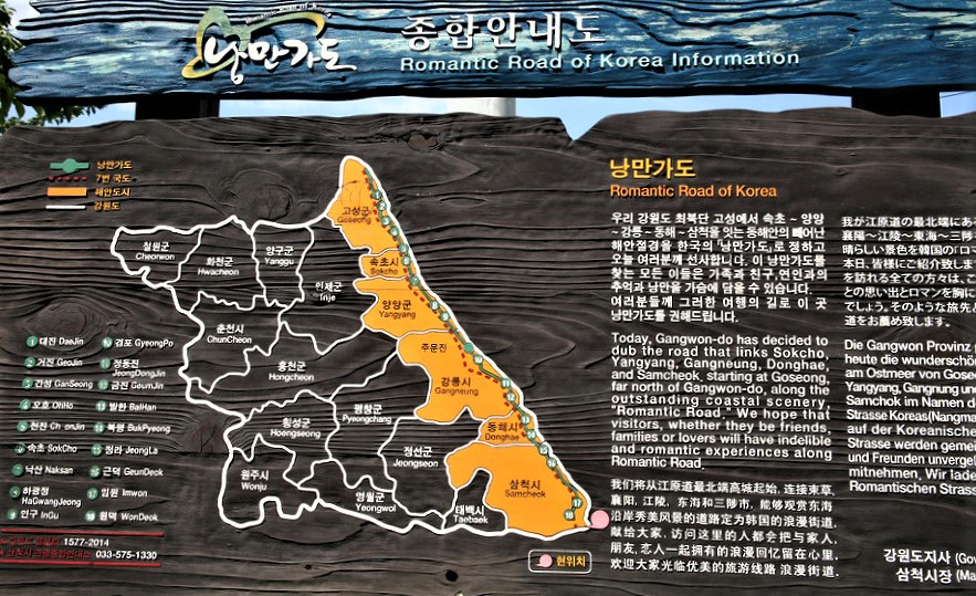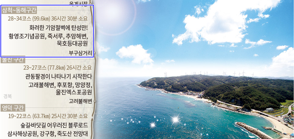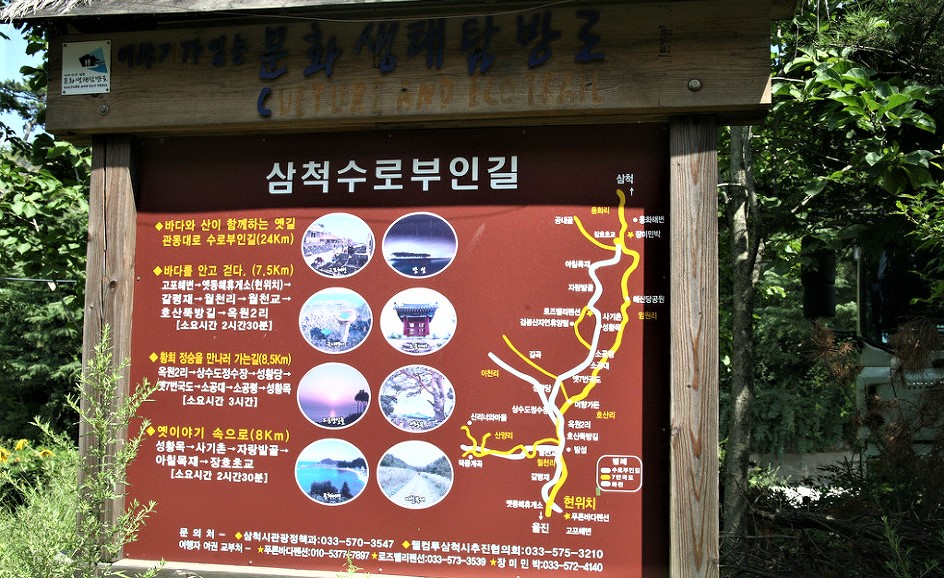 삼척시는 예전 해안 구, 도로를 걷는 여행자에게는 수로 부인길로, 자동차 여행자에게는
