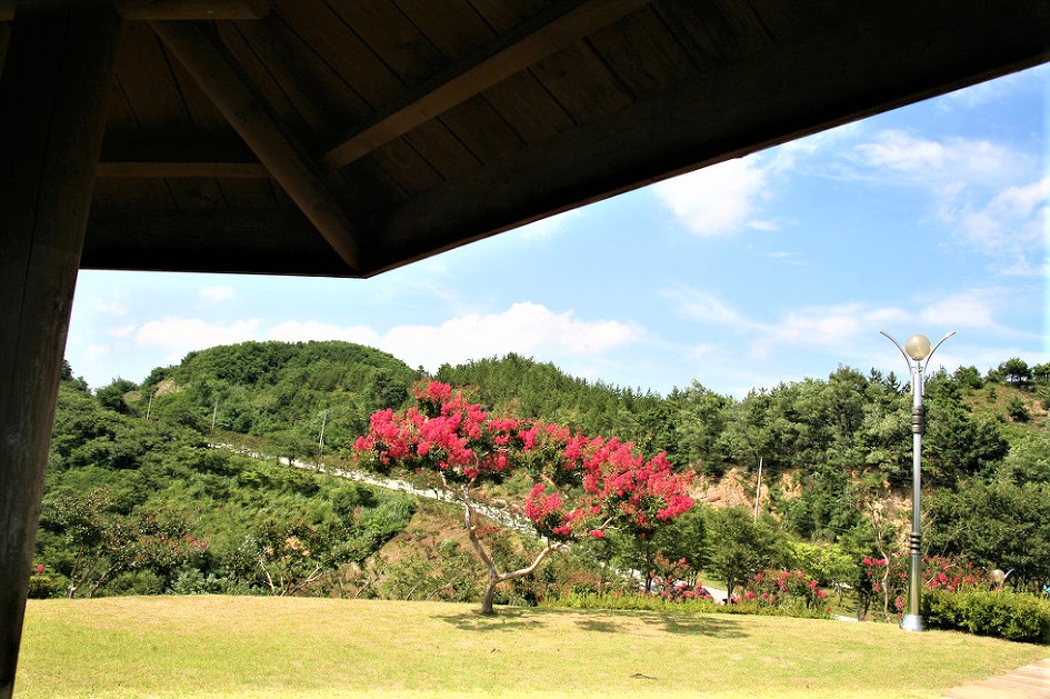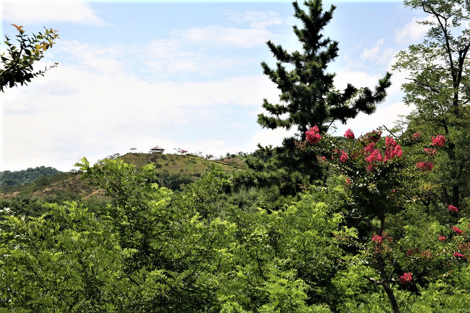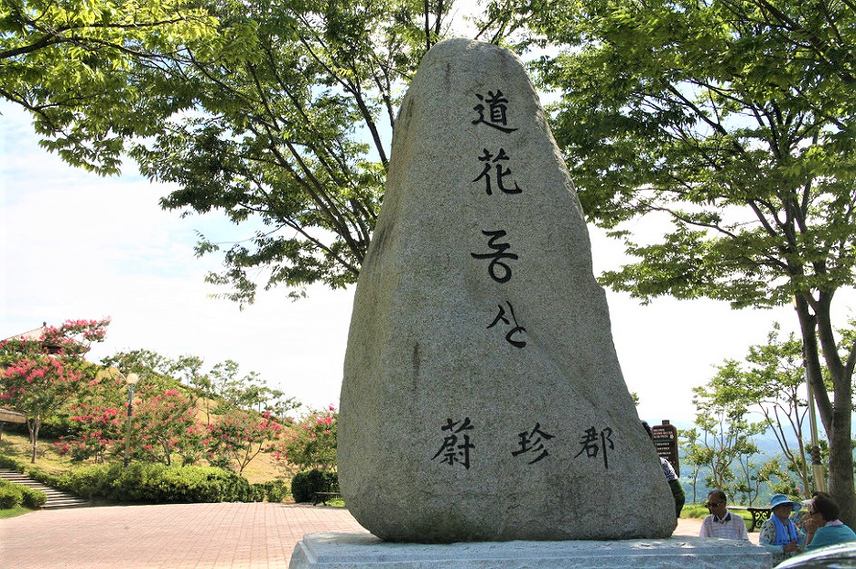 산 위에 정자가 보인다, 저곳은 울진 도화동산이다,