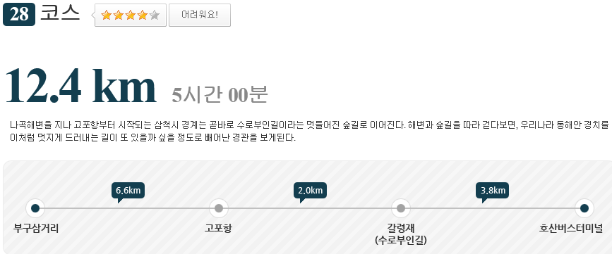 3일간 기록은 3일과 4일 이틀 동안은 28코스 절반(고포-호산)과 29코스 용화까지,