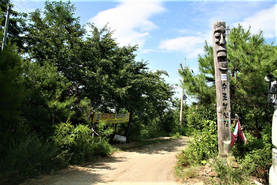 오른쪽으로 잘 보이지도 않는곳에 나즈막한 이정표가 있다, 지목의 높이는 약 두자 정도 남짖이다,