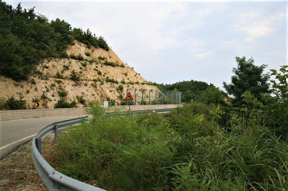 그 한가운데 아스팔트 포장도로 를 따라 가다보면 군 부대 정문이 보인다