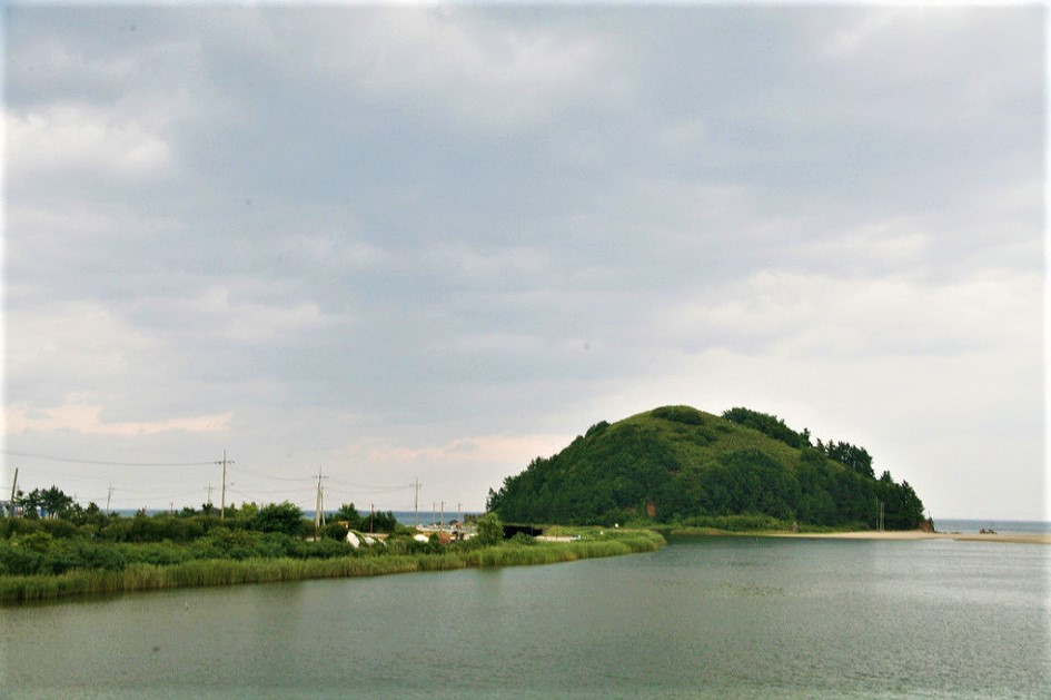 그리고 마지막으로 나오는 덕봉대교를 건넜다, 해변에 섬이 하나 뜨 있다,