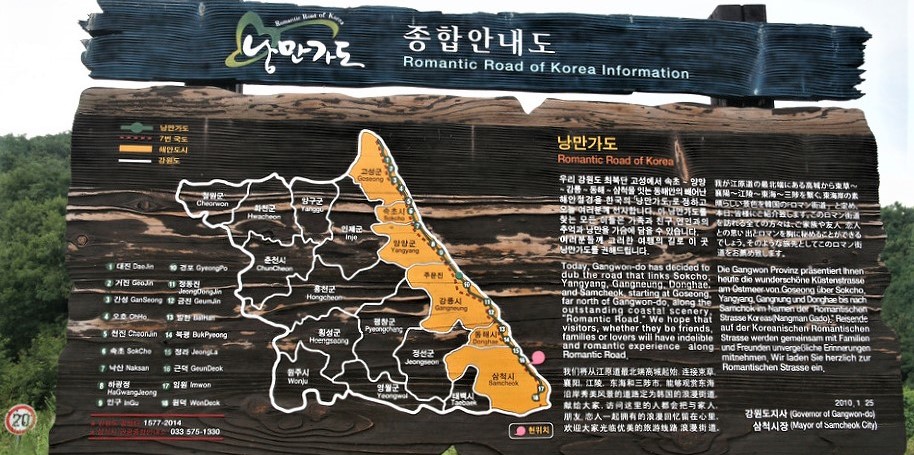 삼척시 해안도로는 길 이름도 많은 곳이다, 일단은 낭만가도라 명명되여 있다,