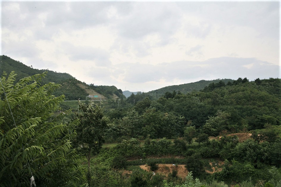 산위에 있는장자에서 내려가다보니 온통 산을 파 헤처