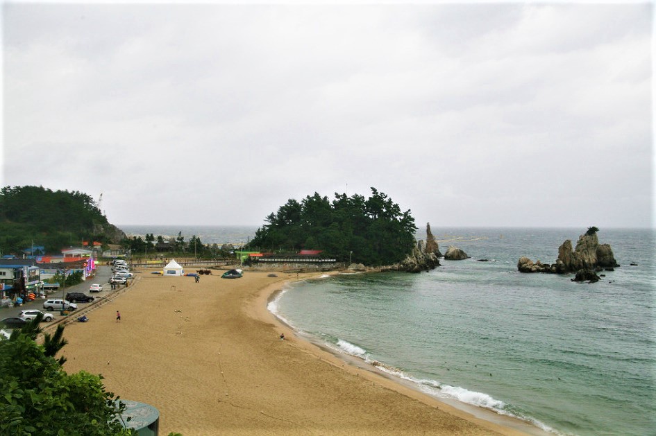 다른 해변에 비해 주변에 갯바위 등이 있어 낚시도 할수있는 곳이다,